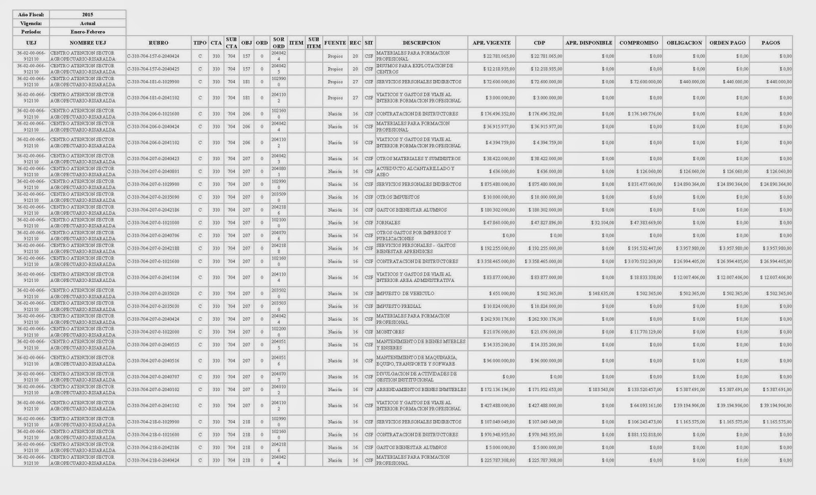 Ejecución Presupuestal al 28 de febrero de 2015 del Centro Atención Sector Agropecuario